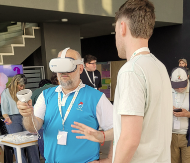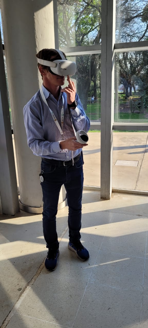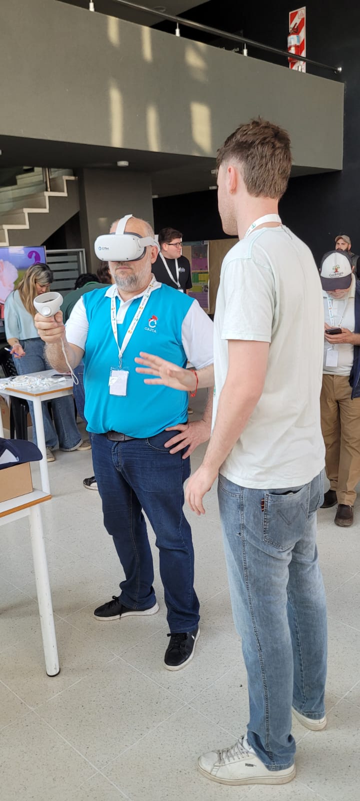 Desde el CITec presentamos una experiencia inmersiva con gafas de realidad virtual, que permitió a los asistentes recorrer de manera interactiva un establecimiento avícola y conocer las diferentes etapas del proceso productivo. Esta propuesta despertó un gran interés entre los participantes, destacando la importancia de incorporar nuevas tecnologías en la formación y capacitación profesional.