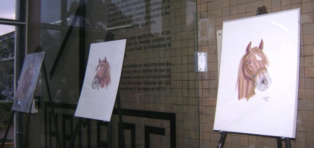 En el marco de la convocatoria a egresados y personal de la comunidad universitaria por parte de la Dirección de Cultura de la FCV para exponer y dar a conocer sus actividades artísticas, en la oportunidad la Abog. María Luján Olivero se encuentra exponiendo parte de su obra la cual está atravesada por la temática de caballos.