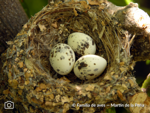El nido es una estructura abierta, semiesférica. Asentado en ramas, miméticos. Emplea fibras vegetales, palitos, líquenes, musgos, ootecas y telas de arañas. Internamente plumas, cerdas, pelos. Expuesto. Elaborado. A baja y mediana altura.