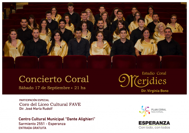 El concierto está auspiciado por el Plan Coral Nacional dependiente de la Dirección Nacional de Formación Cultural del Ministerio de Cultura de la Nación y por la Municipalidad de Esperanza.