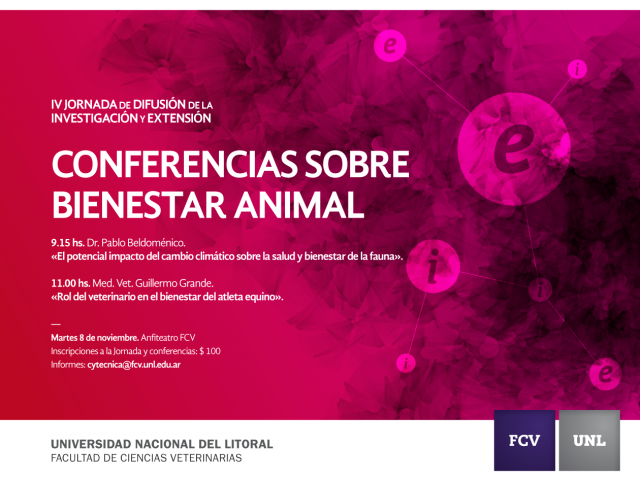 09.15 hs. Conferencia: “El potencial impacto del cambio climático sobre la salud y bienestar de la fauna". Dr. Pablo Beldoménico