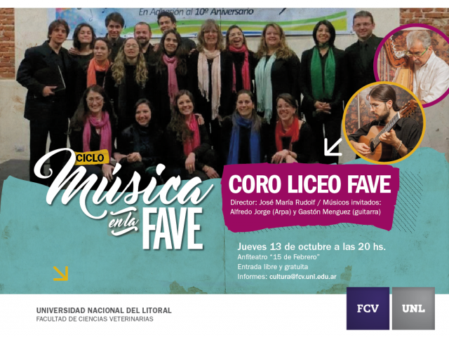 El cierre estará entonces, a cargo del Coro FAVE, dirigido por el prof. José María Rudolf, con la presencia de músicos invitados. Ellos son los destacados músicos esperancinos Alfredo Jorge en arpa, y Gastón Menguez en guitarra.