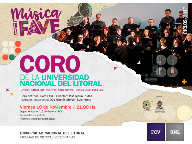Será coro anfitrión el Coro FAVE , dirigido por José María Rudolf, y el Dúo Nicolás Sferco-Luis Prieto como Invitados Especiales.