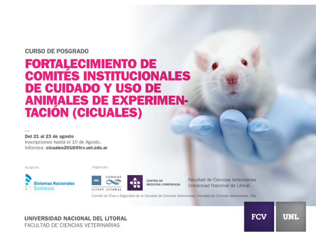 Condiciones de admisión: El curso está destinado a Miembros de Comités de Ética o CICUALES que evalúen protocolos en los que se utilicen animales en experimentación para quienes el curso no tendrá costo. También podrán participar investigadores, profesionales y docentes que trabajen con animales de experimentación y que manifiesten interés en participar en el futuro en este tipo de Comités. Se solicitará un CV resumido de los postulantes y una carta en la que se especifiquen los motivos para la participación en el curso. En caso de superarse el cupo de inscriptos se realizará una selección de acuerdo a los intereses y CV de los postulantes.