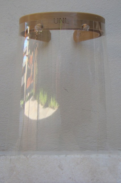 Estas máscaras están constituidas por una visera realizada con material PLA (Ácido Poliláctico) de 1.75 mm, material termoplástico biodegradable, hecho a base de recursos renovables y el agregado de una lámina transparente de material PVC. El diseño y materiales fueron provistos por Universidad Nacional del Litoral (UNL).