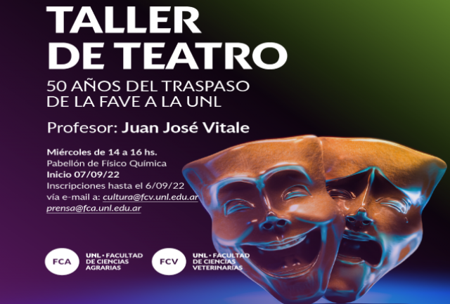 Rumbo a los festejos, las actuales Facultades de Ciencias Agrarias y de Ciencias Veterinarias invitan a toda la comunidad a participar de un Taller de Teatro, que trabajará en los próximos meses para la puesta en escena de una intervención donde se efectuará un recorrido por la historia de ambas unidades académicas.