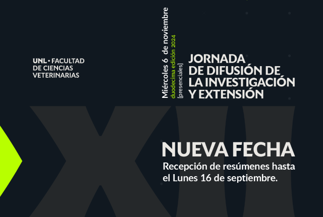La Jornada de Difusión de la Investigación y Extensión se desarrolla anualmente desde el 2013 en el ámbito de la Facultad. Tiene como objetivo reunir a la comunidad universitaria de nuestra institución, así como de otras Facultades de Ciencias Veterinarias, a los fines de compartir y poner en común las acciones que cada equipo docente lleva adelante en Investigación y/o Extensión, a través de la presentación de resultados de trabajos originales que son compilados en formato electrónico en el Libro de Actas de las Jornadas (ISSN 2525-104X).